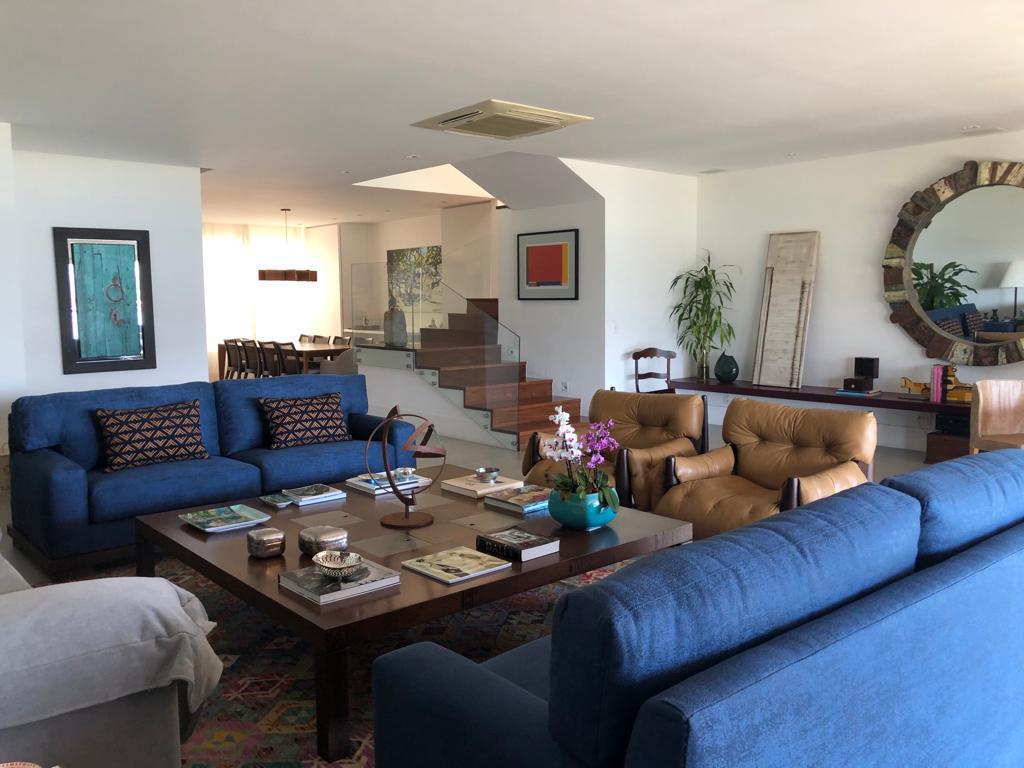 Cobertura duplex reformada e decorada com 629m², totalmente indevassável e iluminada. 1º andar com amplo living em 3 ambientes com varandão e vista incrível da Lagoa, lavabo, sala íntima, 3 suítes sendo 1 master com 2 closets e 2 banheiros. Sala de almoço e cozinha, área de serviço e dependências completas. 2º andar com sala com home family, escritório e terraço frontal, lavabo, sala de ginástica, 1 suíte, depósito e terraço com piscina e espaço gourmet. 4 vagas de garagem. Prédio com portaria 24h, playground com quarto individual de 6m2 para cada apartamento.