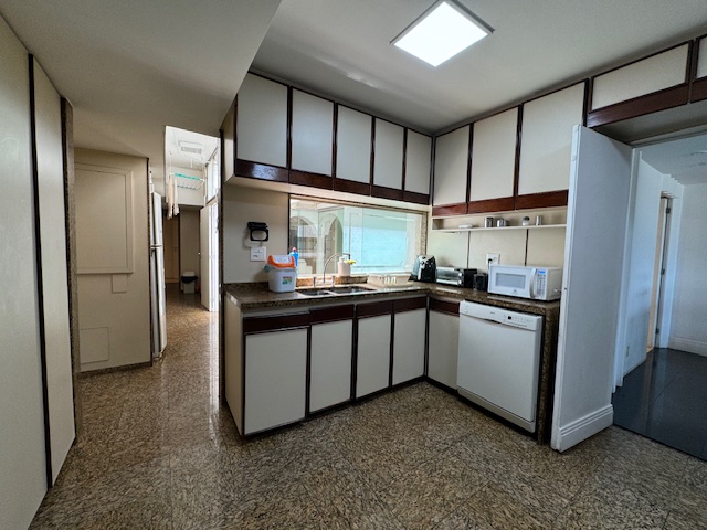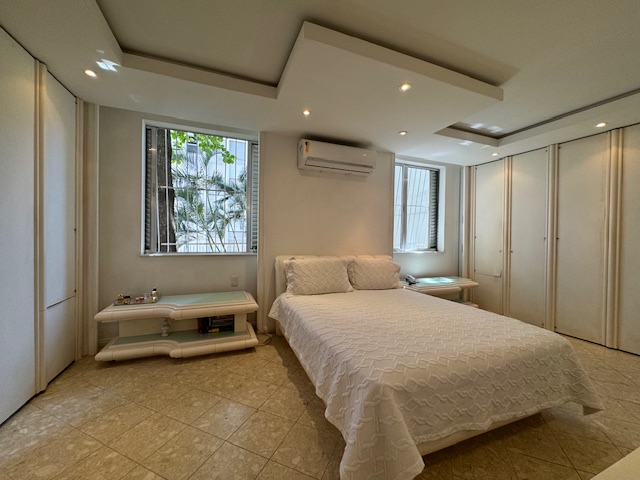 Excelente apartamento com 317 m2 , planta circular , vista total mar , salão , sala de jantar , lavabo , sala intima , 4 quartos sendo 3 suites , banheiro social ( possibilidade de 4 suites), copa cozinha , área de serviço , 2 dependências de serviço com banheiro de serviço , 2 vagas de garagem . Possui grande prisma de ventilação interna com área de uso privativo e jardim nos fundos do prédio , quartos com bastante luminosidade . Prédio 5 andares , 2 p /andar , portaria 24 hs , melhor área da Vieira Souto ( posto 10) .