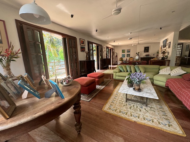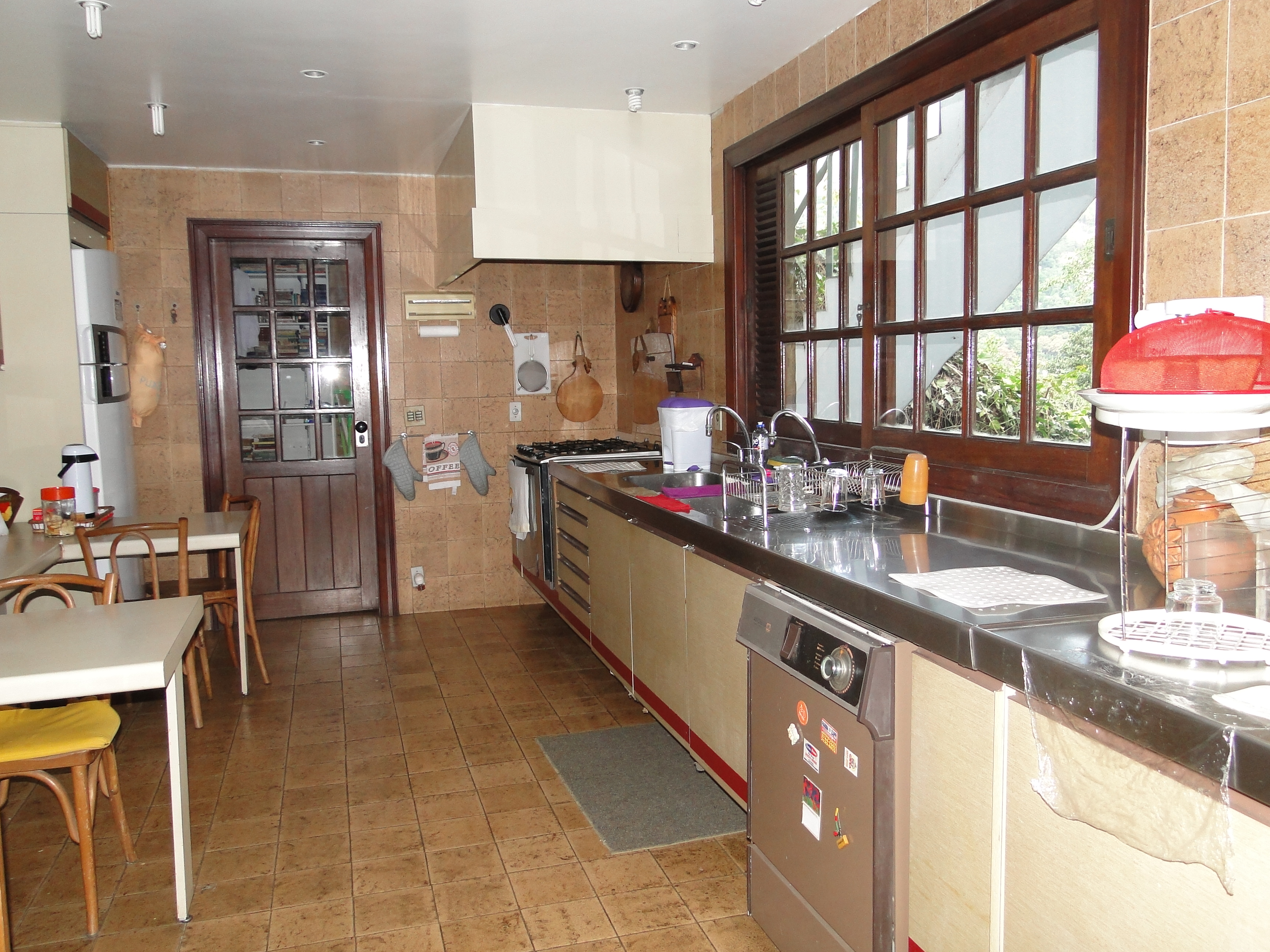 Casa em condominio fechado com segurança na Gávea , 930 m2 , salão em 3 ambientes , varandas , lavabo ,4 suites , sendo uma master , copa cozinha , área de serviço , residencia caseiro , vagas para 3 carros . Apartamento no subsolo com sala , 2 suites . Sauna , piscina , quadra poli-esportiva .
