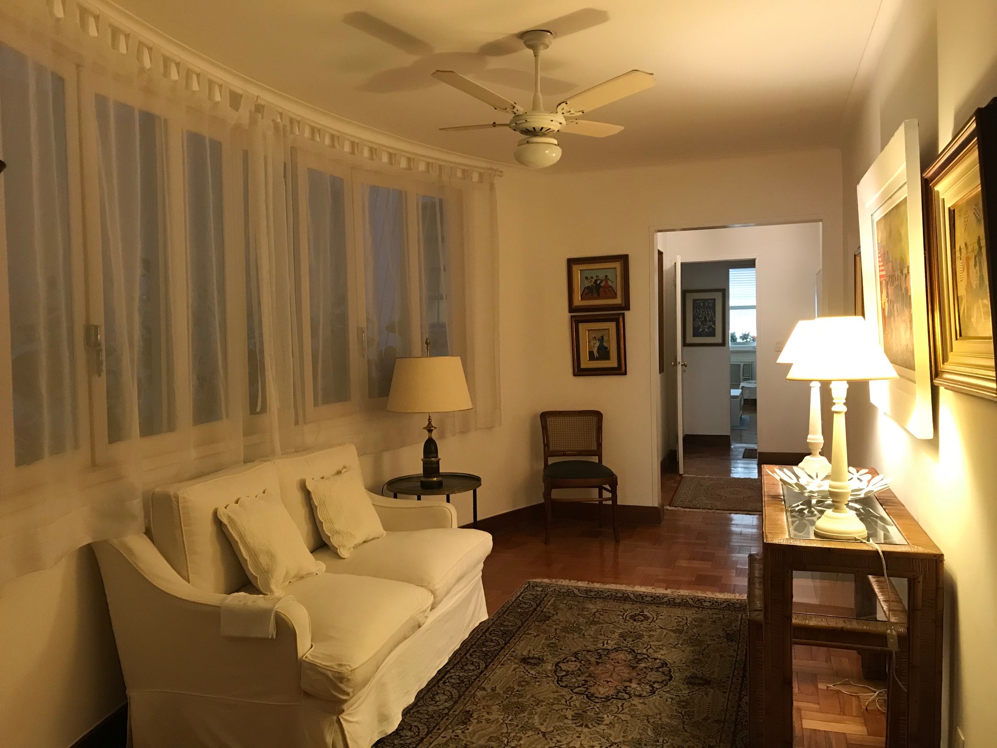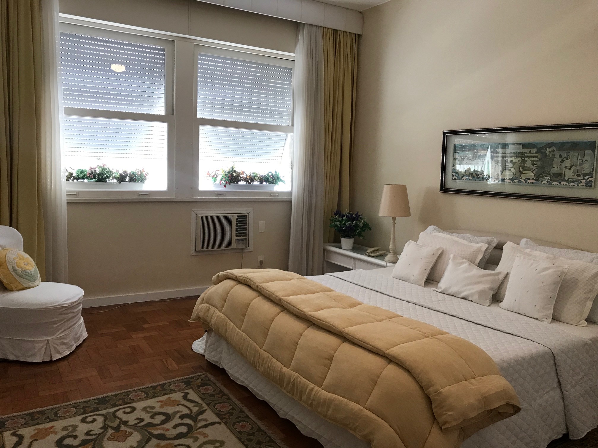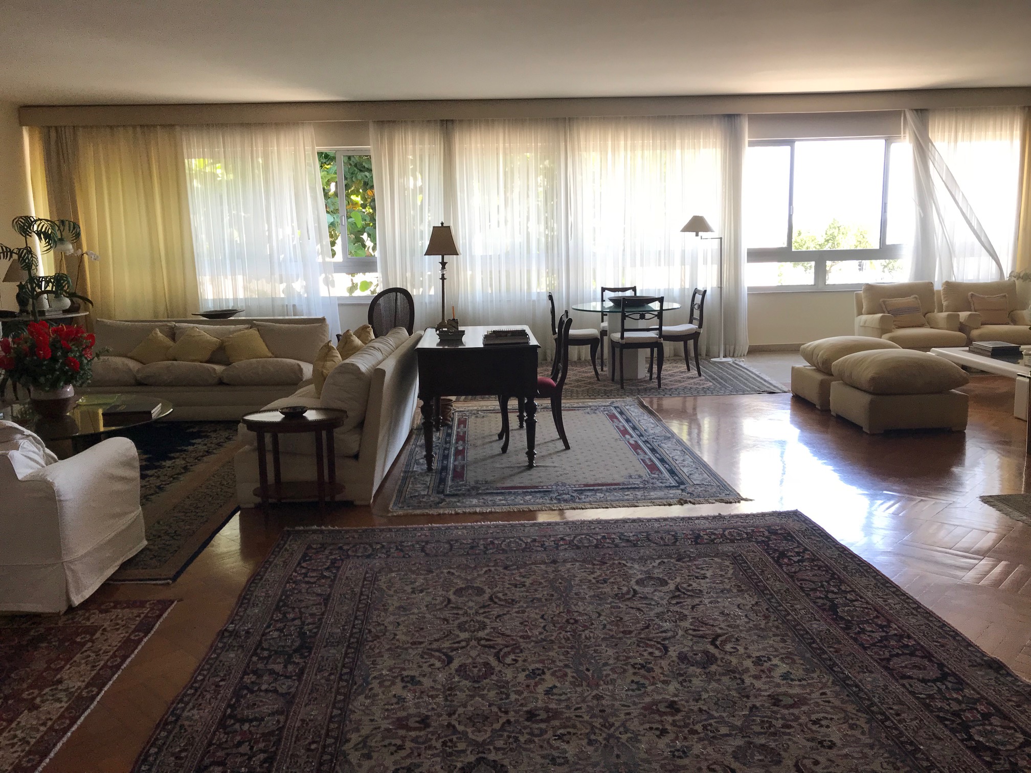 Apartamento mobiliado espetacular de 400m2, com vista pra praia de Ipanema e Arpoador, com planta circular e com todos os cômodos amplos, composto por salão magnífico em 3 ambientes, lavabo, sala íntima, escritório, corredor que leva aos 3 quartos, sendo 1 suíte, banheiro social com banheira, cozinha ampla com copa, área de serviço com 2 quartos de serviço e banheiro de serviço. Portaria 24h e 2 vagas de garagem.